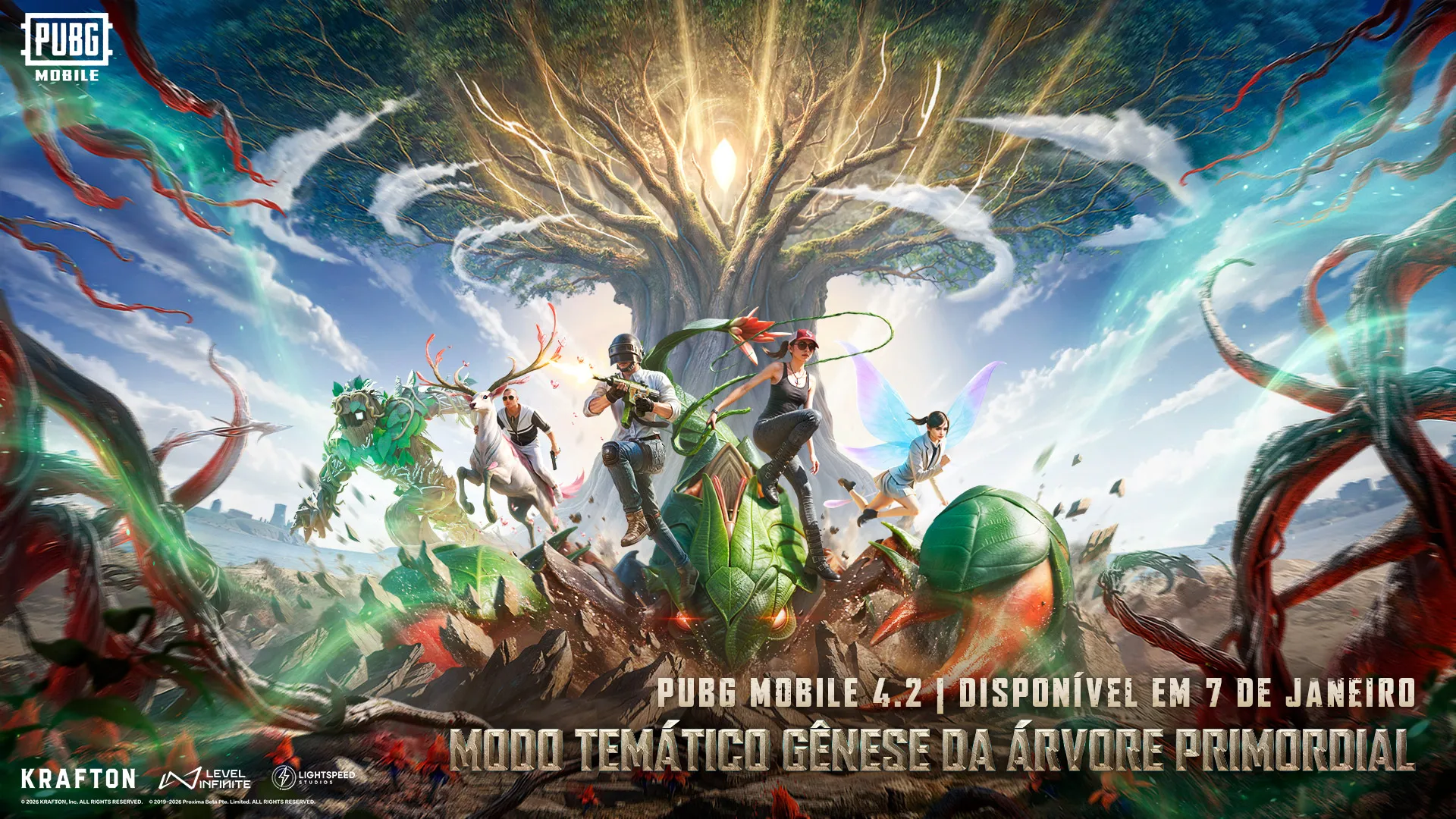 PUBG MOBILE, um dos jogos mobile mais populares do mundo, está empolgado em revelar a Atualização da Versão 4.2. Disponível até 10 de março, os jogadores poderão mergulhar no modo temático Gênese da Árvore Primordial, onde o poder da Árvore Primordial transforma o campo de batalha, dando origem a uma Flor sinistra e corrompida, introduzindo habilidades místicas. Além desse novo modo temático, os jogadores podem aproveitar uma série de atualizações e melhorias no Modo Clássico, uma nova temporada do Metro Royale, recursos do Mundo das Maravilhas expandidos e uma programação vibrante de eventos sazonais.