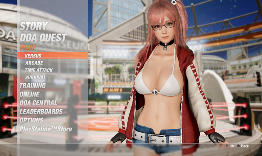 O DOA Central é onde você pode customizar seus personagens, ver suas estatísticas, assistir a replays de partidas, ouvir ou ajustar as músicas de fundo e também ver informações do mundo de Dead or Alive.