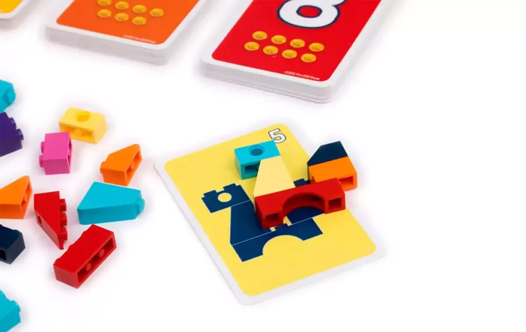 Na dinâmica, um jogador descreve o modelo sem mostrar, enquanto o outro constrói. A comunicação e colaboração são essenciais para vencer. O jogo comporta de 2 a 8 participantes e apresenta cartas com diferentes níveis de desafio, incluindo regras divertidas como montar de olhos fechados, garantindo diversão e emoção para todos os públicos.