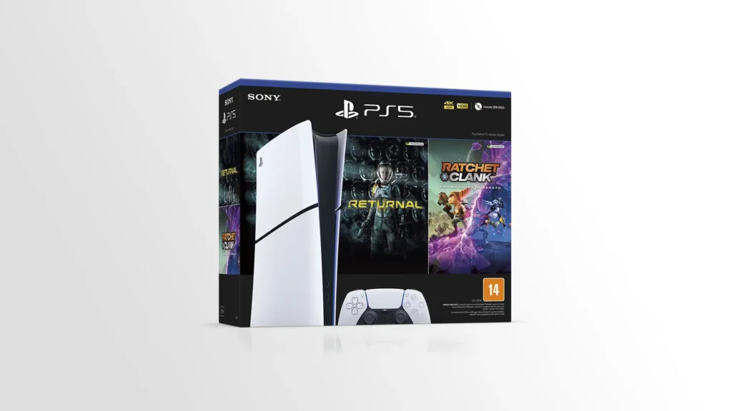 A PlayStation surpreende os fãs de jogos com o lançamento de um novo bundle do PlayStation 5 Edição Digital (Modelo Slim) com dois jogos – Returnal e Ratchet & Clank: Em Uma Outra Dimensão. O pack chega ao Brasil nesta quarta-feira (17/4) pelo valor de R$ 3.799,90, o menor preço sugerido do console desde seu lançamento em 2020.