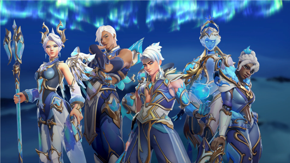 Como as skins são baseadas na Aurora Boreal as tonalidades são azuladas o que causa um aspecto muito bonito nas skins e deixa os personagens muito mais lindos do que já são.