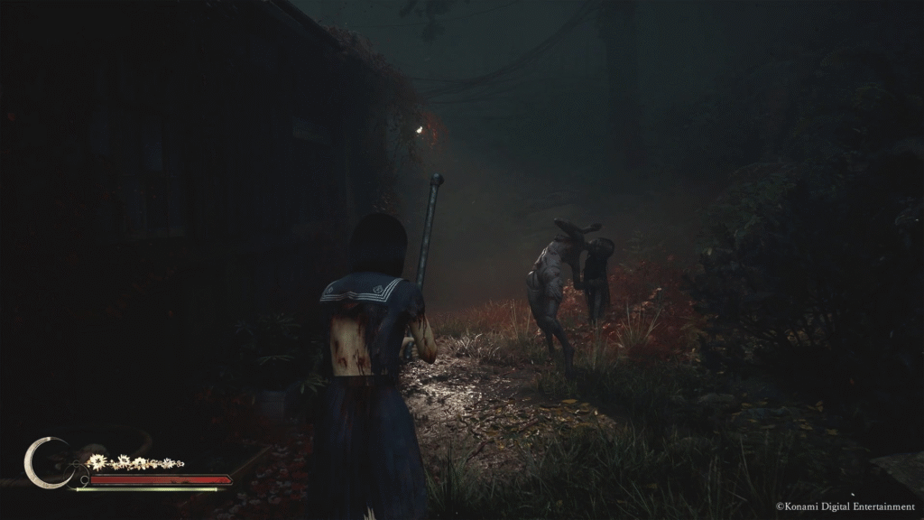 Vale destacar que o combate não tem nada a ver com Soulslike, como os próprios desenvolvedores precisaram esclarecer em entrevista pública. Hinako, sendo uma adolescente, ainda precisa se esforçar muito para derrotar os inimigos. Suas ações são desajeitadas, e ela claramente sofre durante os confrontos, assim como acontecia com James em Silent Hill 2.